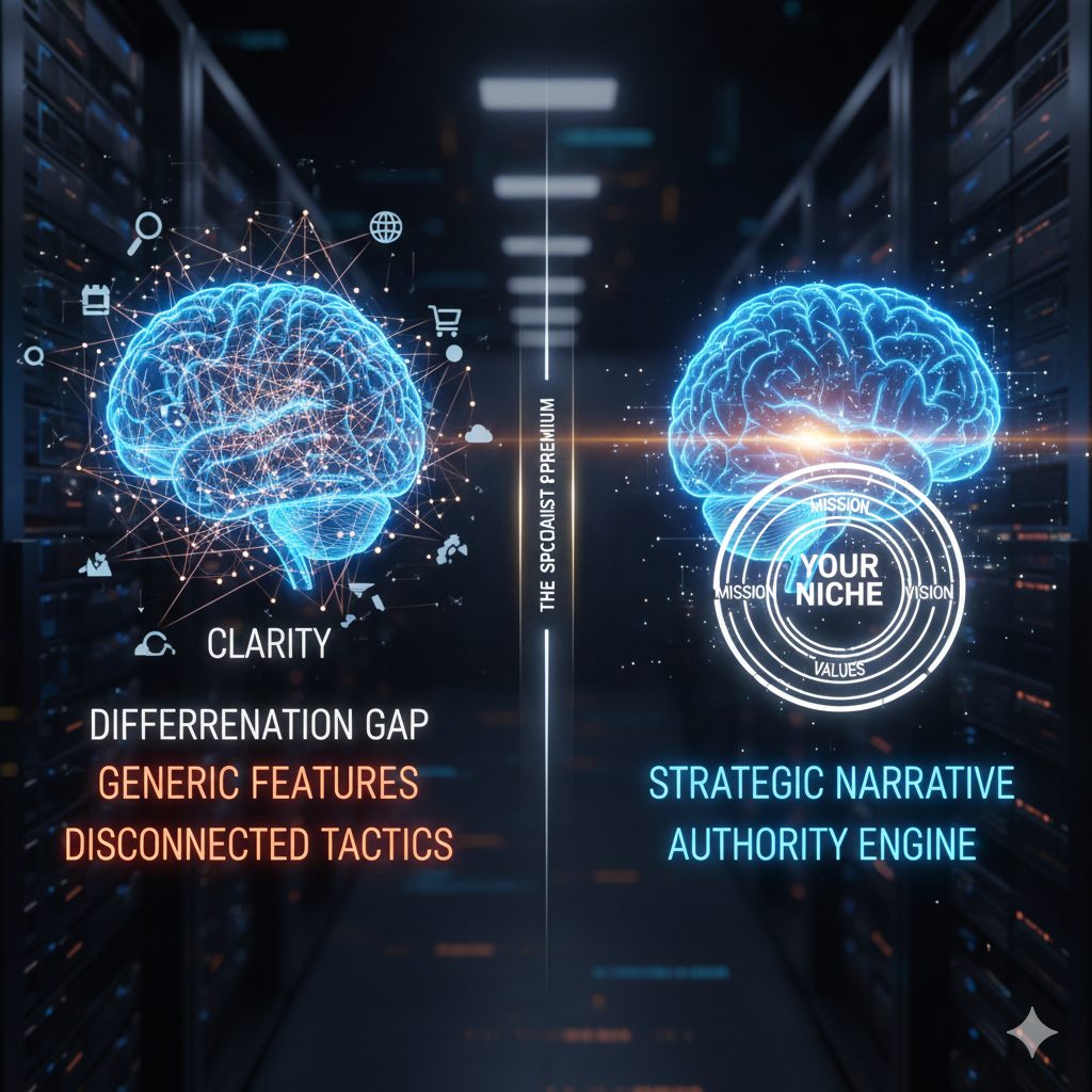 Most founders are too close to their product to see the “Differentiation Gap.” They market features (what the product does) instead of the Strategic Narrative (why it matters to a specific niche). This is why the Brand Voice & Authority Engine begins with “Identity Extraction.”